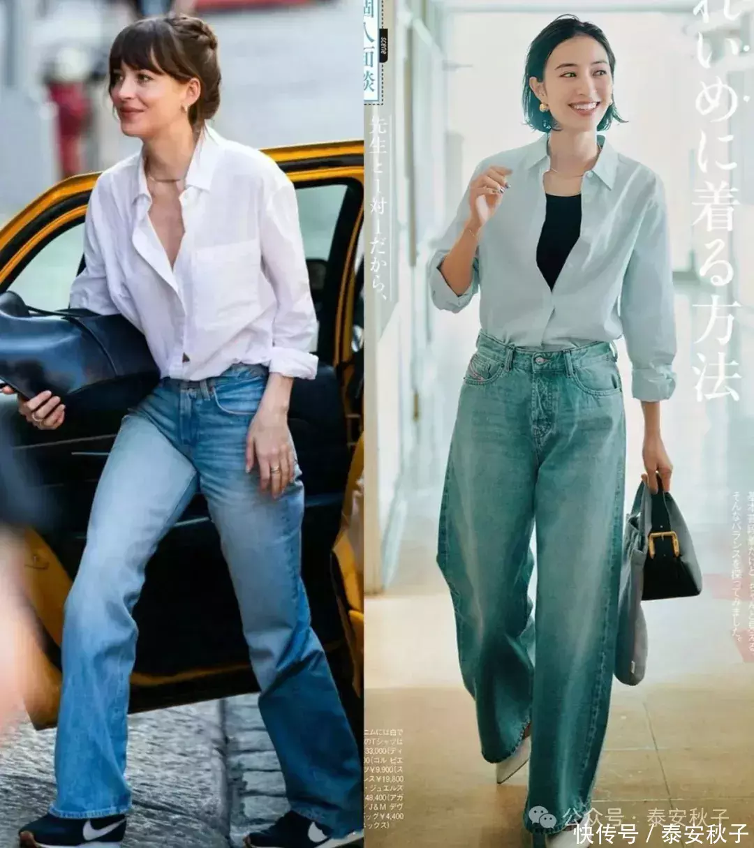 衬衫+牛仔阔腿裤在追求风景与个性的先锋潮水下,现如今许多的斯文精,驱动偏疼璀璨疏漏的穿搭作风。生涯中的她们,心爱用经典神圣的oversized纯色衬衫,去配简便修身的牛仔阔腿裤,以此来打造粗疏解放的失业氛围感。