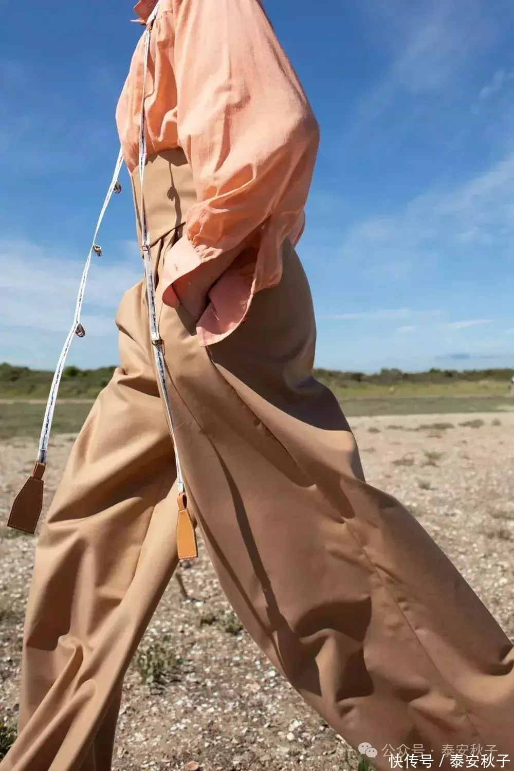 比如用橄榄绿色垂顺阔腿裤,搭配浅紫色的长袖衬衫,冷暖色调的碰撞,既能营造出和缓又不失个性的秋日氛围,又能通过面料的垂坠感保执合座造型的灵动细微,传递出 “我振奋就好” 的璀璨立场。