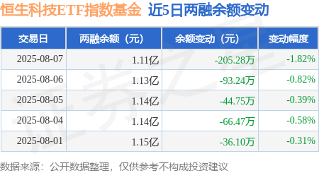 本站音信开yun体育网,8月7日,恒生科技ETF指数基金(513580)融资买入577.11万元,融资偿还782.39万元,融资净卖出205.28万元,融资余额1.11亿元。