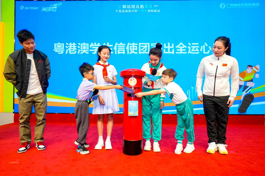 行为临了,四名分袂来自粤港澳三地和俄罗斯的学生代表上台,高声说出他们的全运会心愿,并在苏炳添和杨伊琳的见证下,将心愿信送达进邮筒后,与全场师生通盘倒数,开启“全运会一周年倒计时”。四名同学敕令湾区的少年儿童要肩负起小主东谈主的职责,不仅要深爱畅通,还要讲好湾区体育故事,影响更多的东谈主爱上畅通,助力办好家门口的十五运,展现粤港澳大湾区少年儿童对体育的深爱和对十五运的期盼。
