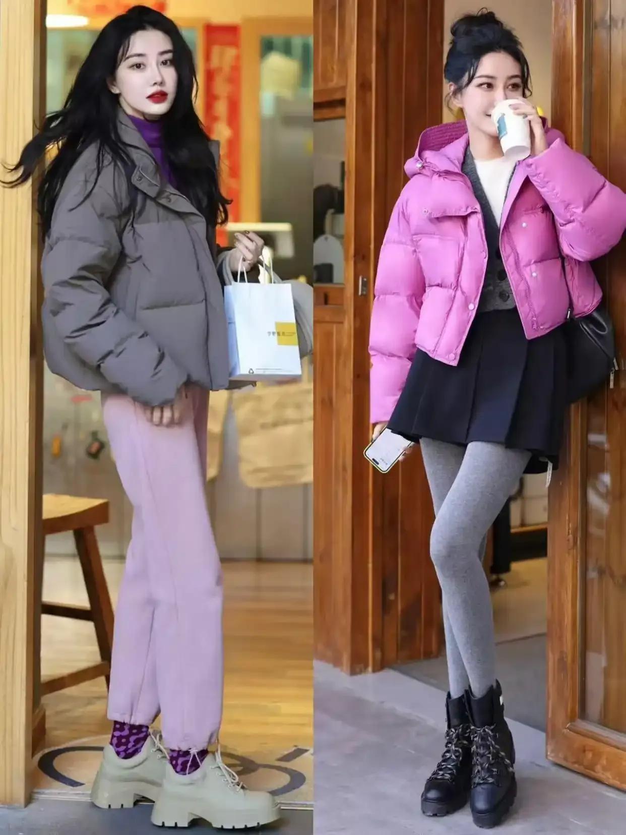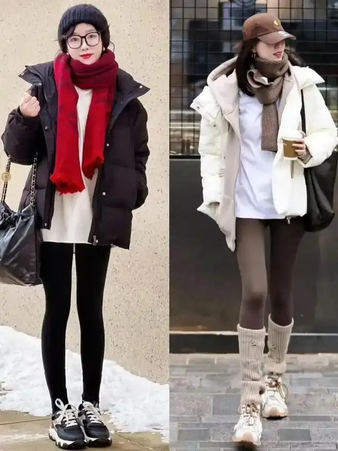 我个东说念主不太保举,公共遴荐长款的羽绒服搭配,像这种玄色的长款羽绒服,上身甘休就显得有点臃肿,虽然了,在朔方城市下雪的情况下,气温相比低,遴荐长款羽绒服来穿,如实会更御寒。