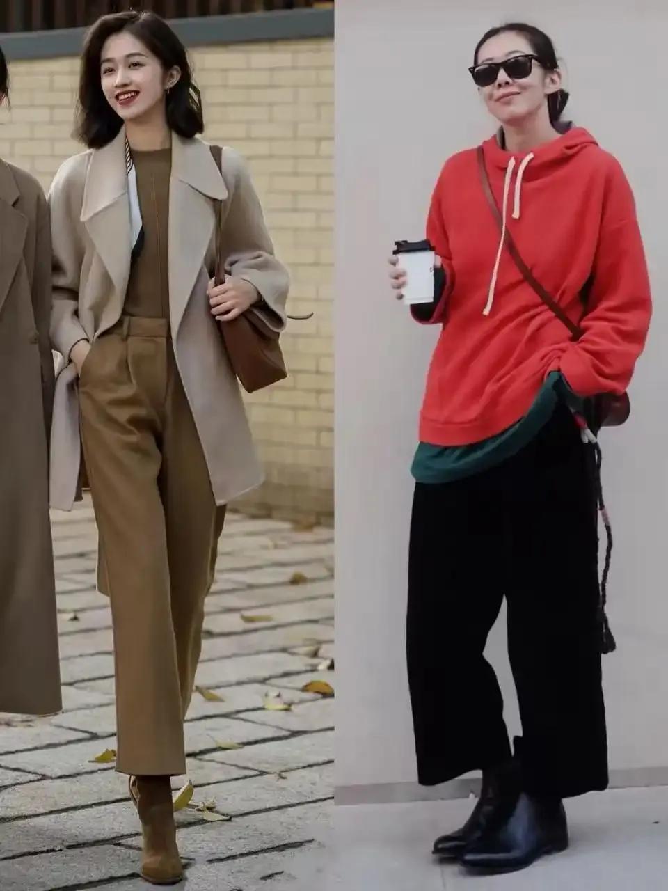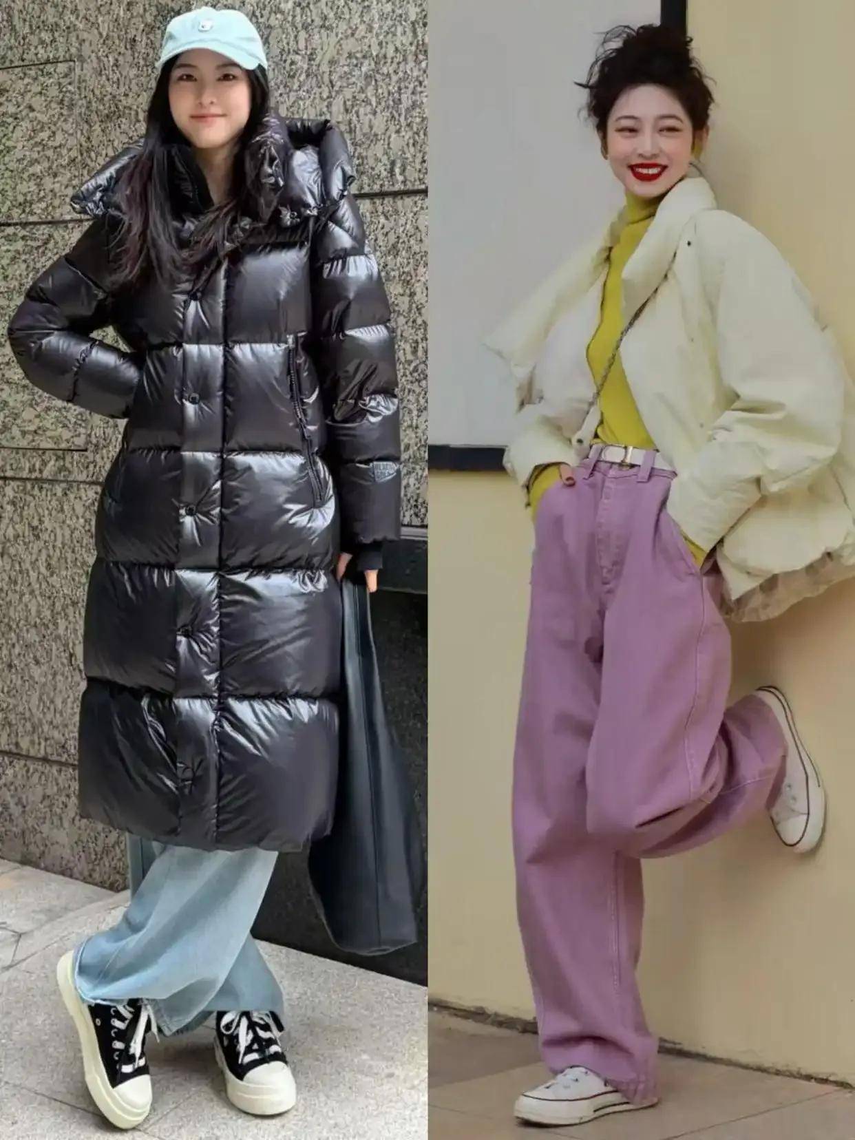 第二章:职场女性遴荐直筒阔腿裤,让你更检朴干练①羽绒服搭配直筒阔腿裤
