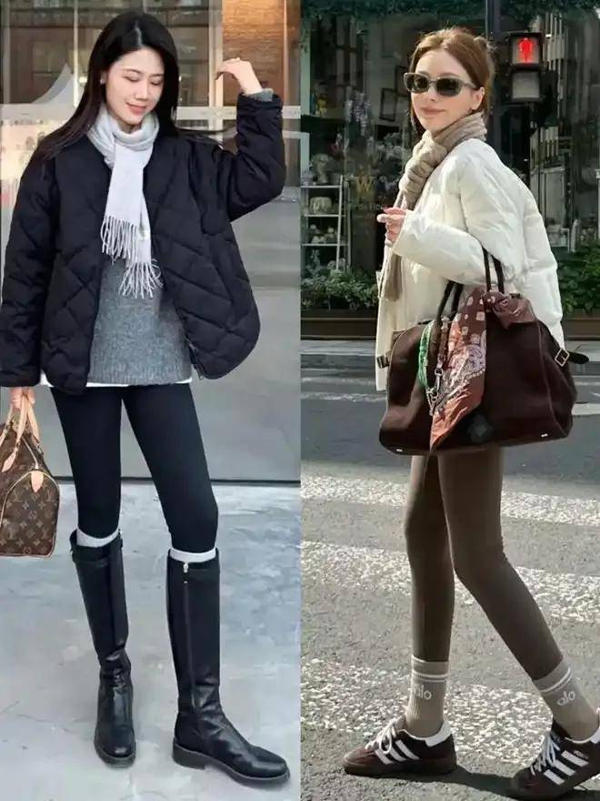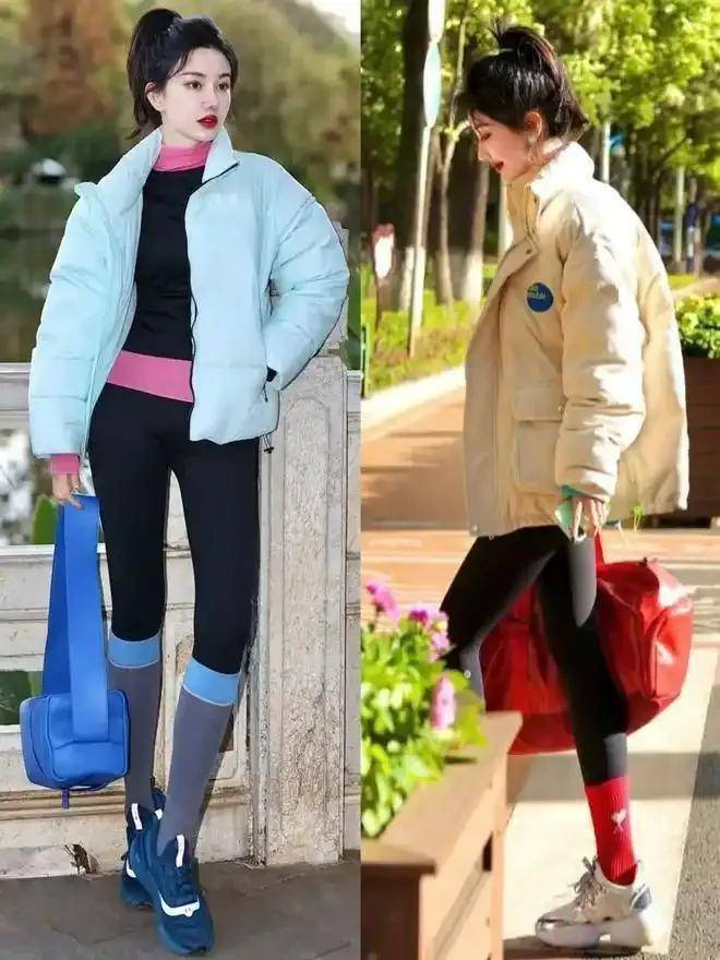 本年还果然很流行,紧身的无痕裤,这种裤子贴在肌肤上,能更好的呈现出腿部的线条,比如上头这位成齐街拍女生用了玄色羽绒服,内搭一件长款的卫衣,下半身遴荐玄色的无痕裤就要穿老爹鞋,加上一对灰色的堆堆袜来点缀,这样的穿搭活力感满满。